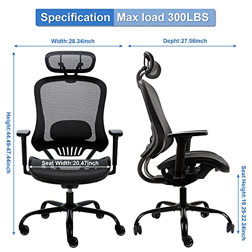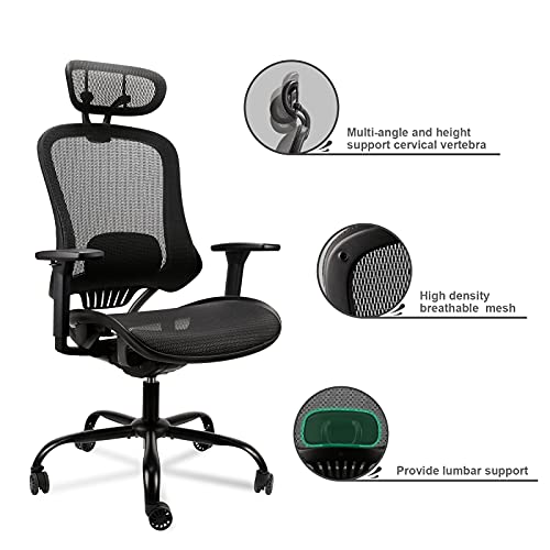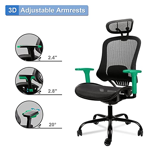 Komene Ergonomic Office Chair Mesh Computer Desk Chair Adjustable High Back Chair With 3d Armrests Lumbar Support Swivel Drafting Chair Uskomene